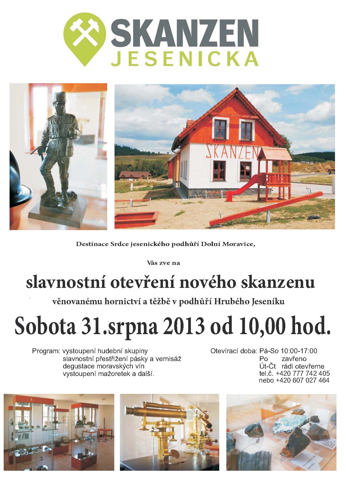 V podhůří Pradědu na okraji obce Dolní Moravice bude v sobotu 31. srpna 2013 slavnostně otevřen SKANZEN JESENICKA. Více informací najdete ZDE nebo na www.skanzenjesenicka.cz |